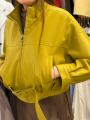 Излюбленный нами фасон оверсайз со спущенным плечом Стойка воротник придает куртке лаконичный и минималистичный вид.