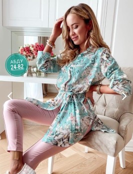 Рубашка необычного кроя в актуальных принтах.