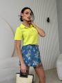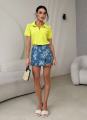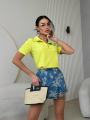 Стильная футболка с аккуратным отложным воротником и декоративной отделкой по краю Модель с коротким рукавом и удобной молнией спереди сочетание комфорта и трендового дизайна Прямой крой красиво садится по фигуре, создавая аккуратный и женственный силуэт Отличный вариант как для повседневных образов, так и для более собранных луков.