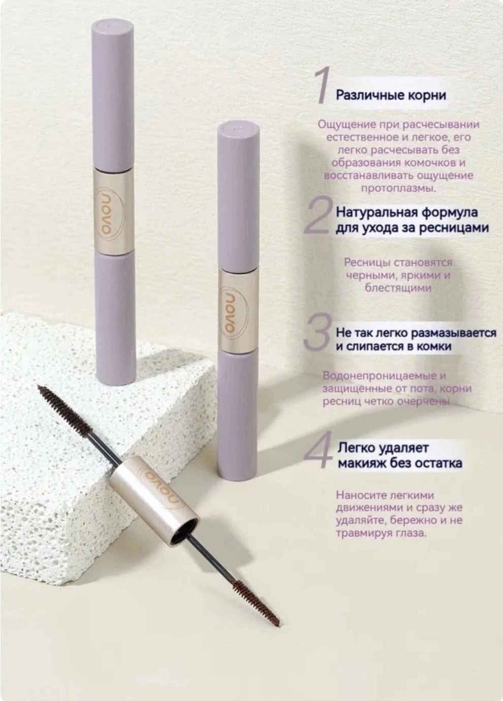 Тушь для ресниц с двойной, тонкой кисточкой.