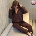 Этот спортивный женский костюм апофеоз современной женской моды, где безупречный стиль встречается с непревзойденным комфортом, создавая совершенство для активной и стильной особы Эта тщательно продуманная модель, состоящая из худи на молнии и элегантных джоггеров, предназначена для тех, кто ценит свободу движений и не желает идти на компромиссы в вопросах эстетики.