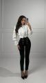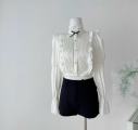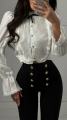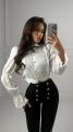 Романтичная блузка с воротником-стойкой и плиссировкой Элегантная модель с пышными рукавами-фонариками и изящной кружевной отделкой Декоративный бант и жабо с плиссе добавляют образу аристократичности Укороченный крой идеально сочетается с брюками и юбками на высокой талии.