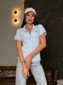 Стильная футболка с аккуратным воротником Модель с коротким рукавом и удобной молнией спереди сочетание комфорта и трендового дизайна Прямой крой красиво садится по фигуре, создавая аккуратный и женственный силуэт.