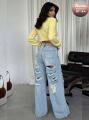 Джинсы в стиле гранж с порезами сзади ваш холст для контрастных образов, приглашающий окунуться в атмосферу непринужденной дерзости.