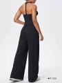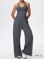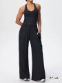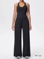 Топ-майка со съемными чашечками и свободные штаны с карманами.