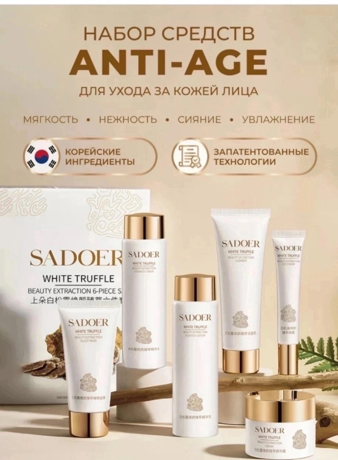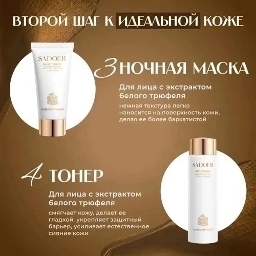 Очаровательный подарочный набор уходовой косметики для лица white truffle от sadoer - это идеальный выбор для эффективного anti-age ухода, борьбы с ежедневным стрессом, тусклостью, пегментными пятнами и расширенными порами Этот beauty box наполнен мягкостью, нежностью, сиянием и увлажнением, что подарит вашей коже профессиональный уход.
