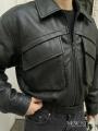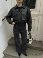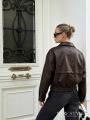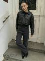 Укороченная куртка выполнена из искусственной кожи с уникальным дизайном в стиле у2k.