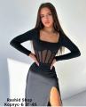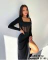 Стильное черное платье-лапша с сеткой и разрезом, которое идеально сочетается с черными ботинками на платформе Такой образ выглядит современно и элегантно, подчеркивая фигуру и добавляя нотку дерзости.