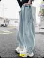Джинсы джоггеры oversize baggy светло-голубые с резинкой на поясе и манжетах y2k стиль.