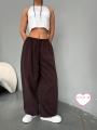 Прямые штаны с молнией внизу.