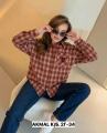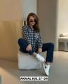 Женская клетчатая рубашка с эмблемой на кармане.