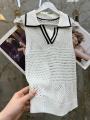 Кофта в сеточку с v-образными вырезом.
