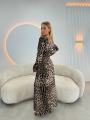 Почувствуйте себя дерзкой и стильной в этомдлинном эластичном платье с длинными рукавами и анималистическим принтом от lady in leopard brown!.