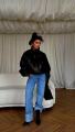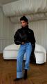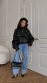 Этот образ сочетает в себе элементы гранжа и элегантности Черная кожаная куртка оверсайз с высоким воротником добавляет дерзости и стиля, идеально подходя для весенний или зимнего сезона.
