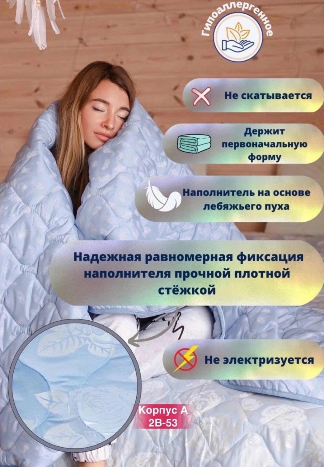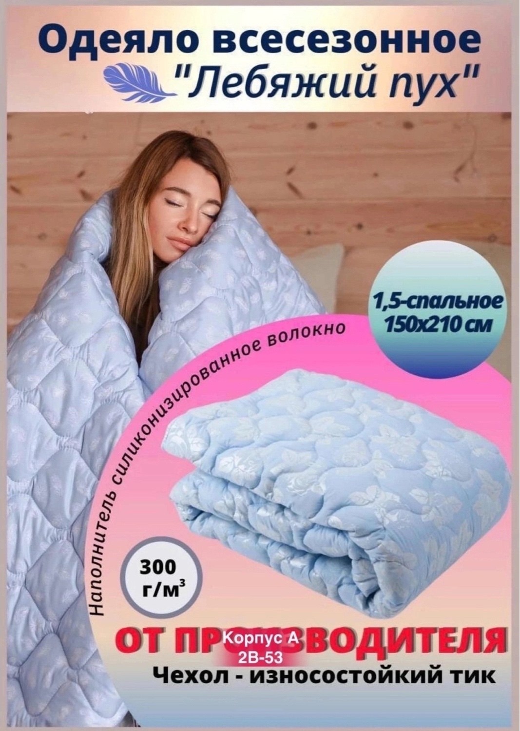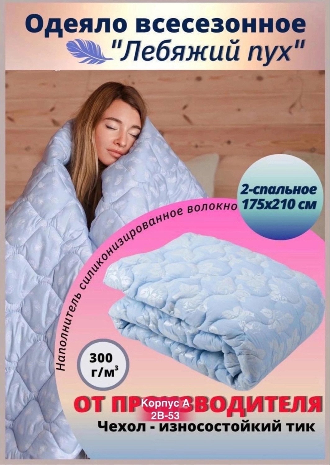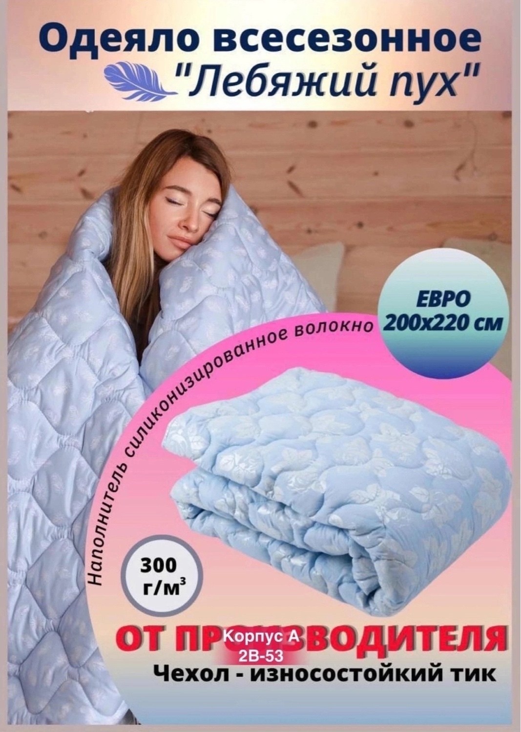 Наполнитель: заменитель лебяжьего пуха (силиконизированное волокно).