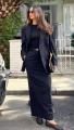 Длина юбки - 94 см, сзади есть разрез, есть боковые карманы.