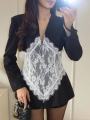 Эффектный пиджак с контрастной кружевной вставкой под корсет.