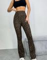 Представляем вам стильные классические леопардовые женские брюки клеш от колена с высокой посадкой, которые станут неотъемлемой частью шикарные ветровкиа!.