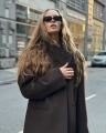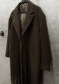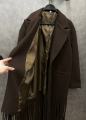 Стильное пальто с бахромой в шоколадном оттенке.