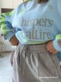 Уютный костюм-двойка: свободный свитшот с принтом и широкие брюки на резинке.