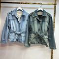 Джинсовая куртка-жакет с акцентом на талии.