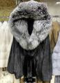Шубка из меха европейской под норки с капюшоном из меха чернобурой лисы внутренней меховой пояс 75см длина, оверсайз размер 4244 46 48 50 52.
