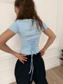 Футболка укороченная с завязками сзади.