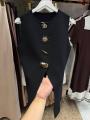 Трендовый жилет с золотыми пуговицами.