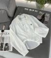 В комплекте: свободная рубашка и лаконичный топ.