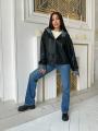 Комбинированный бомбер в стиле оверсайз.