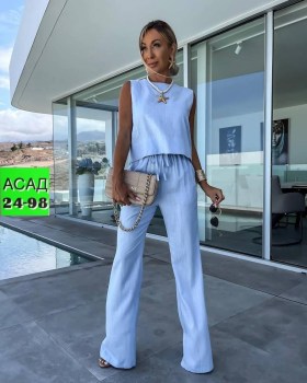 Трендовый костюм двойка майка и штаны клеш свободного кроя.