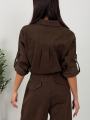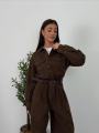 Стильный комбинезон с длинным рукавом идеальный вариант для создания эффектного и продуманного образа Модель выполнена в рубашечном стиле с накладными карманами и аккуратным воротником, что добавляет лгкую нотку casual-шика.