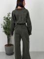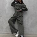 Стильный комбинезон с длинным рукавом идеальный вариант для создания эффектного и продуманного образа Модель выполнена в рубашечном стиле с накладными карманами и аккуратным воротником, что добавляет лгкую нотку casual-шика.