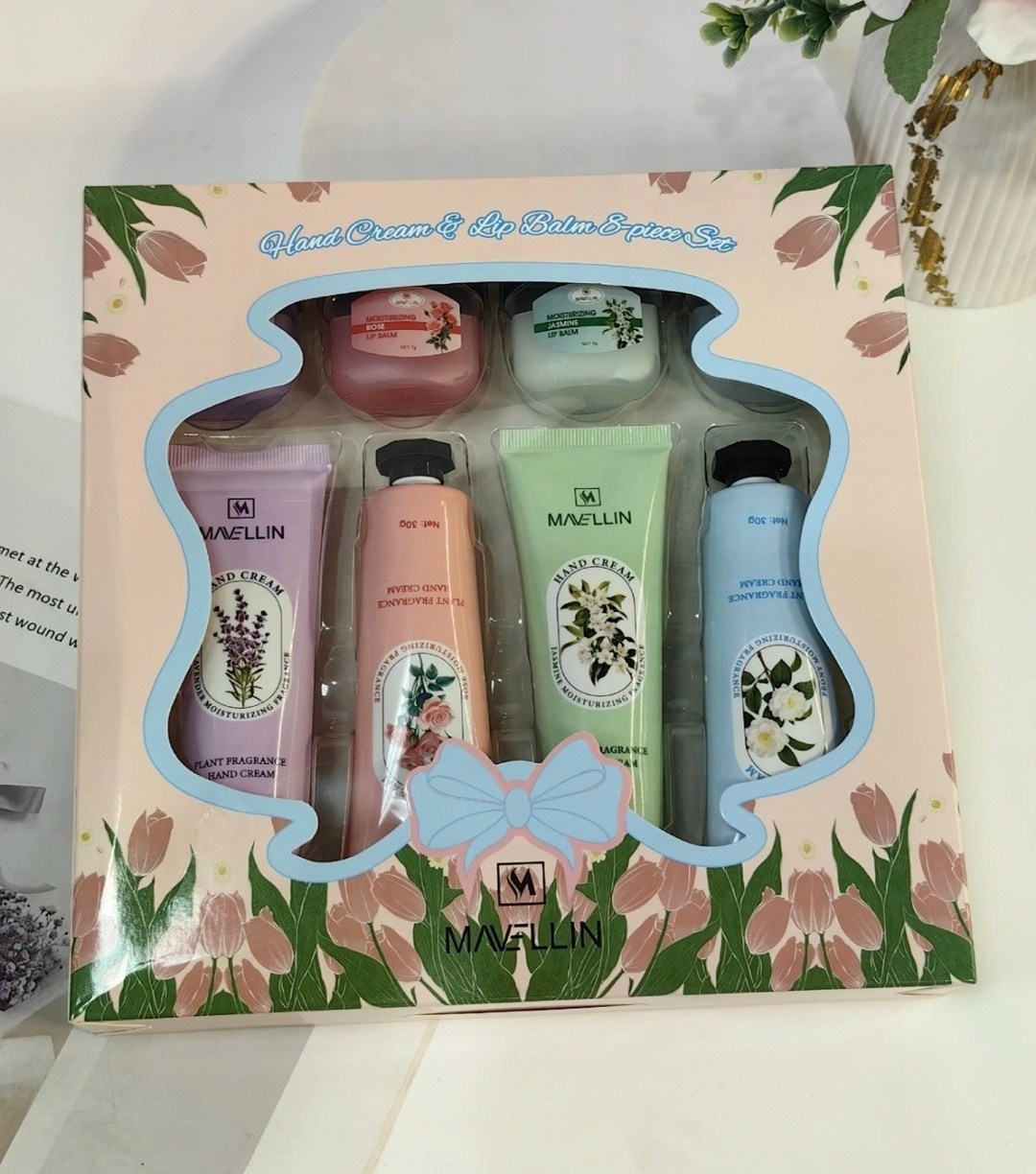 Внутри аккуратной упаковки кроется крем для рук с восхитительным ароматом, который питает сухую кожу Восковой барьер защищает от трещин и дарит ощущения нежности каждый день Природные ингредиенты обеспечивают длительное увлажнение, обладают мощным эффектом против сухости В составе также находится бальзам с вазелином и маслами, разработанный специально для губ Он обеспечивает защиту от обветривания и восстановление после воздействия мороза.