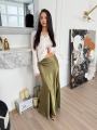 Юбка макси шелк с кружевом по бокам