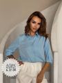 Добавьте свободы в деловой аутфит, используя рубашку с рукавами на патах, кокеткой со встречной складкой на спинке и суппатной застежкой спереди.