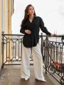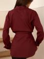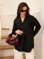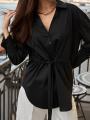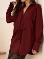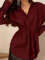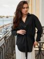 Рубашка женская на завязках выполнена в черном и бордовом оттенке, который всегда остатся актуальным Модель с завязками на талии и спине позволяет создавать разные силуэты: расслабив шнурок свободный прямой крой, затянув элегантный приталенный образ Длинные рукава с удлиннными манжетами, аккуратный воротник и удлиннный подол подчркивают женственность.
