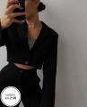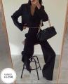 Комплект состоит из укороченного пиджака и брюк палаццо которые создают одновременно строгий и стильный.