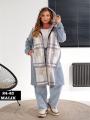 Женская кардиган в клетку с карманами.