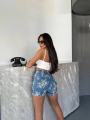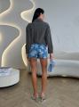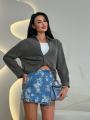 Представляем вам стильная юбка-шорты (также известная как скорт, которая сочетает в себе женственность юбки и практичность шорт Плотный деним (джинсовая ткань) классического синего цвета Передняя часть выполнена внахлест, создавая имитацию мини-юбки с асимметричным краем Сзади и под запахом изделие выглядит и сидит как обычные шорты.