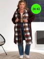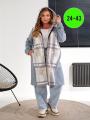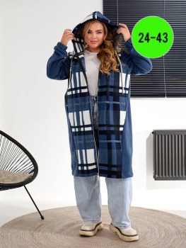 Женская кардиган в клетку с карманами.