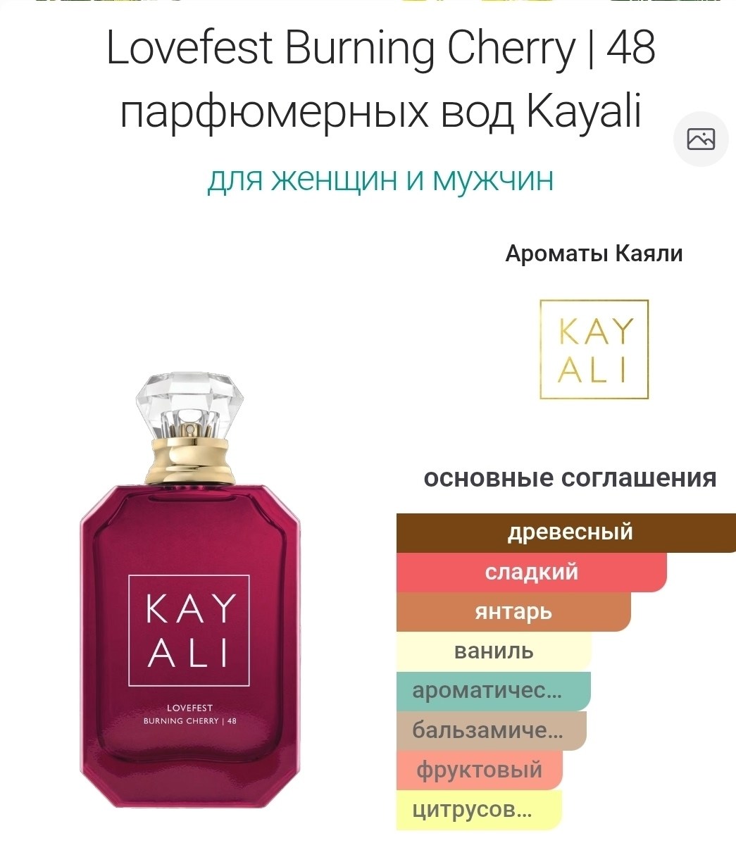 Парфюмерная вода lovefest burning cherry 48 eau de parfumотkayali fragrances это восточно-древесный аромат для женщин и мужчин lovefest burning cherry 48 eau de parfumбыл выпущен в 2022 году Создателями аромата являются габриэла челариу и филиппин куртьер Верхние ноты: жженая вишня, малина и бергамот; средние ноты: пралине, гелиотроп, дамасская роза и жасмин самбак; базовые ноты: пало санто, бобы тонка, гваяковое дерево, перуанский бальзам, амбреттолид, пачули и гаитянский ветивер.