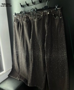 Джинсы женские широкие багги со стразами созданы для тех, кто любит внимание и свободу движения Модель сочетает трендовый силуэт baggy jeans.