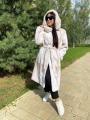Шуба мех бобрик кролик, с капюшоном чернобурки, длина 115 см.