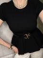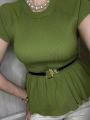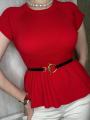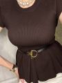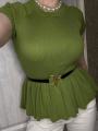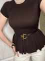 Трикотажный топ с баской ремень в комплекте.