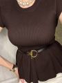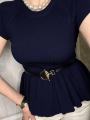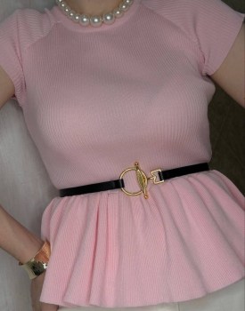 Трикотажный топ с баской ремень в комплекте.