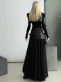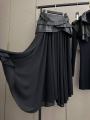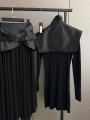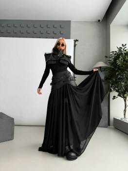 Костюм тройка premium качества, идеальная посадка, выполнен из мягкой эко кожи, юбка креп-шифон,трикотажное платье-водолазка,манишка из эко кожи, длина изделия: юбка 110см,.
