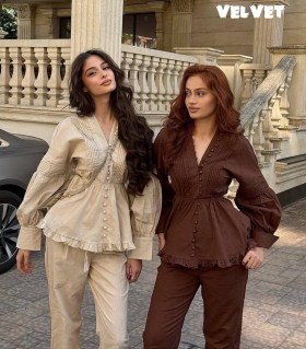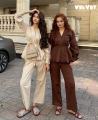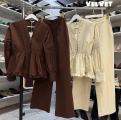 Элегантный хлопковый костюм must have этого сезона комфортная ткань, которая дышит универсальный дизайн: от офиса до прогулки нежные оттенки: бежевый и коричневый стильные детали: рюши, пуговицы, свободный крой.