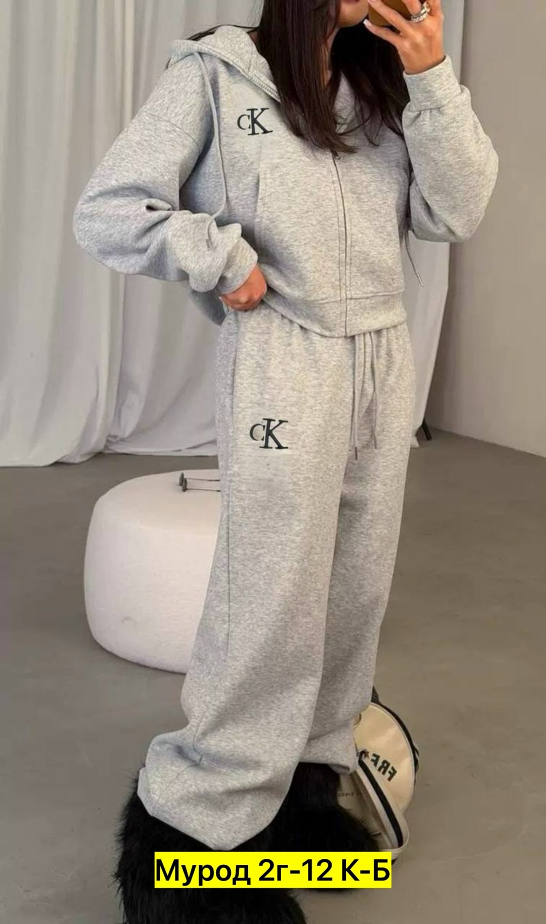 Стильный, удобный, при этом подчeркивающее все достоинства фигуры-костюм с худи и брюками Придаeт своей обладательнице женственность, грациозность!.