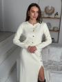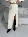 Шикарный женственный костюм с юбкой, с акцентными пуговицами.